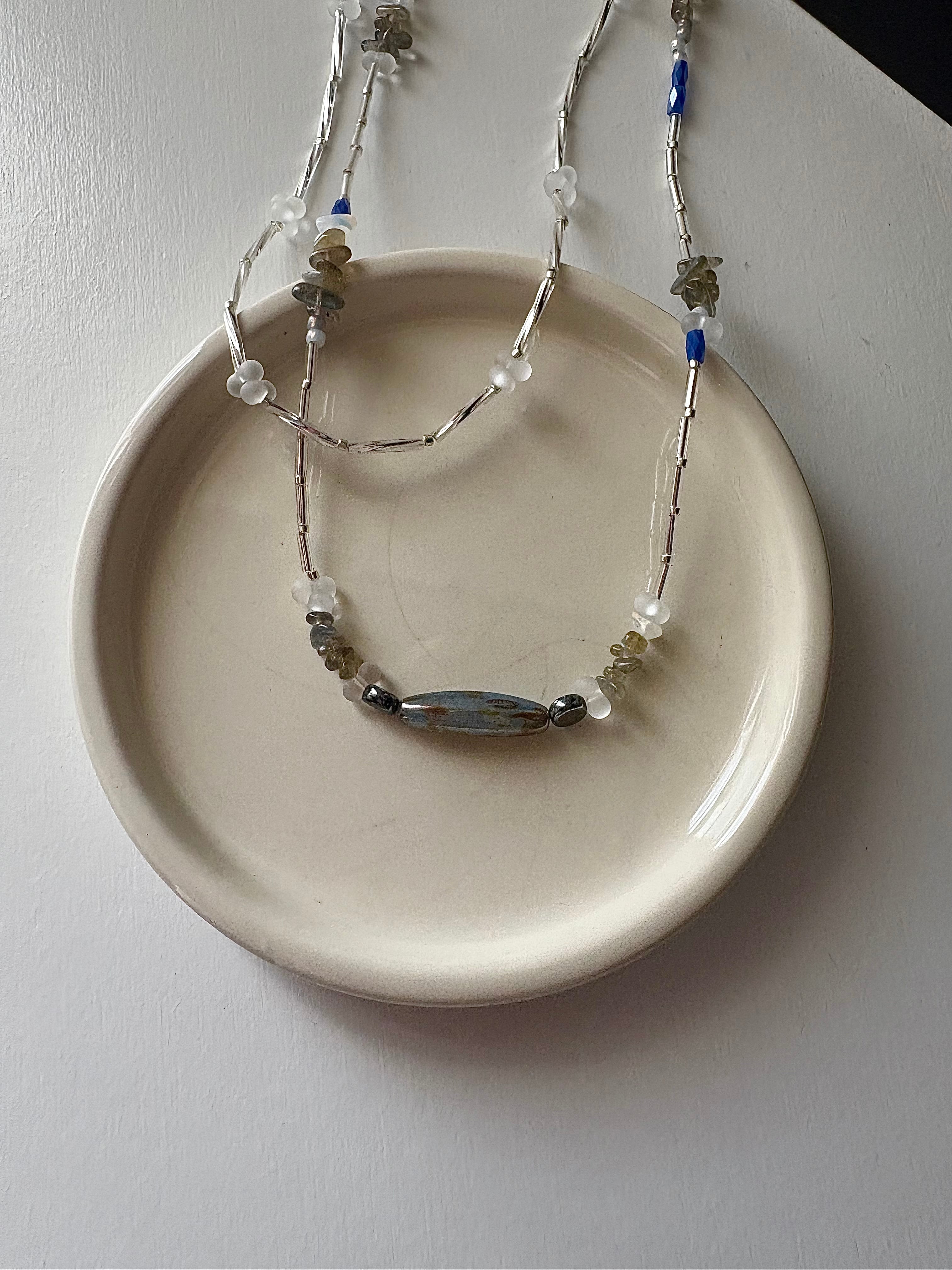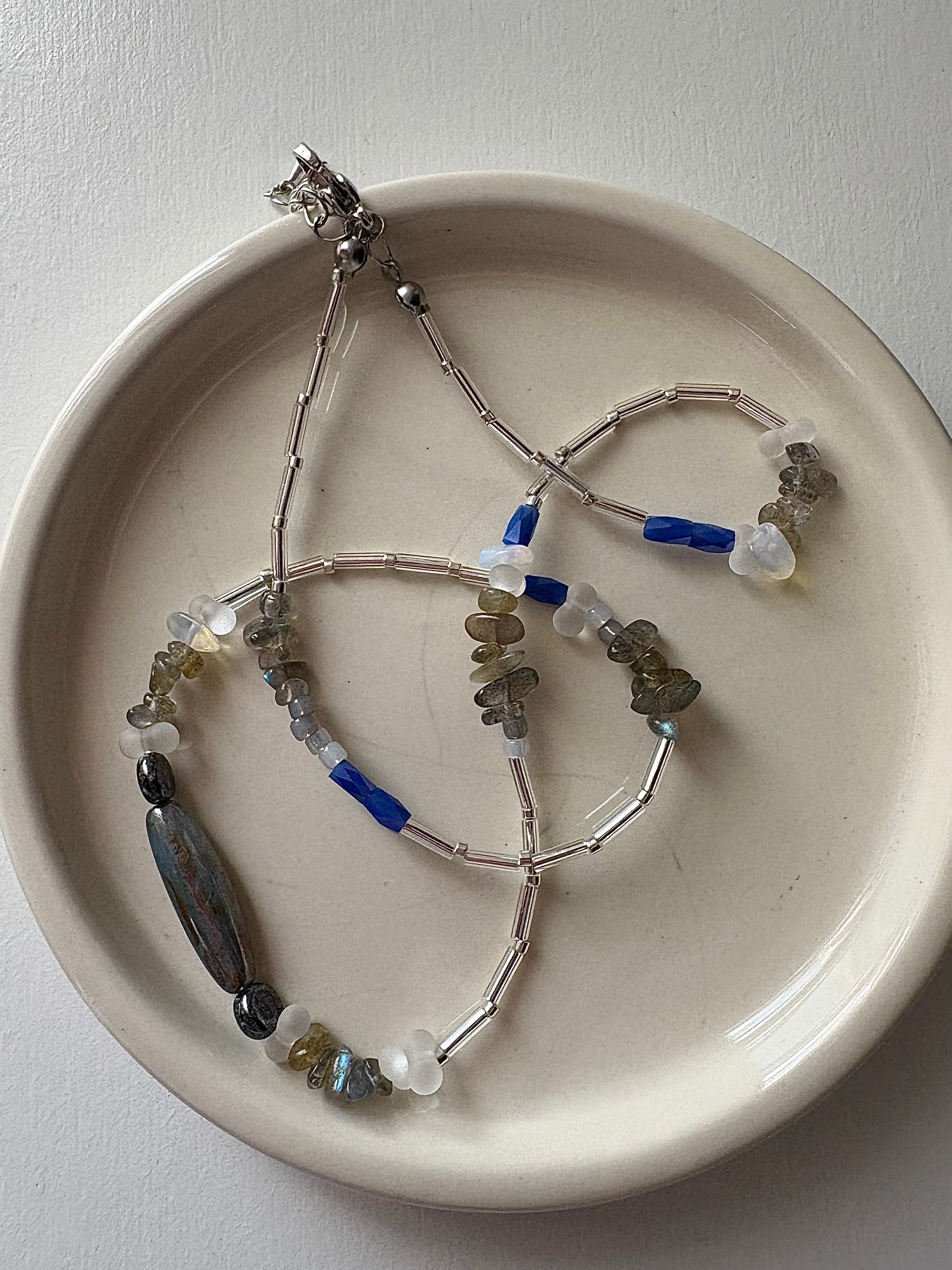 ブルーのガラスビーズをポイントに